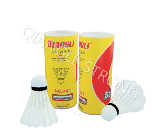 货号:ITEM NO.444品名:筒装羽毛球ITEM:feather shuttlecocks材质:鸭毛 + 发泡material:duck feather + Foam head备注:3粒/筒 100筒/箱remark:3pcs/tube.100tubes/ctn