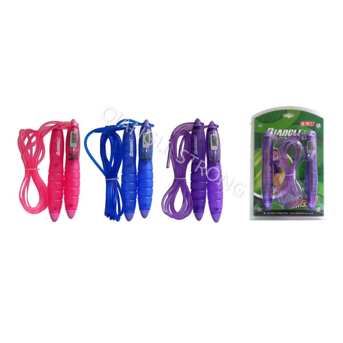 品名:电子计数跳绳ITEM:Digital jumping rope规格:2.8m Length:2.8m材质:ABS+PVC Material:ABS grip+PVC rope单条吸塑装:48条/箱Packing:1 pc in blastic packing,48pcs/ctn