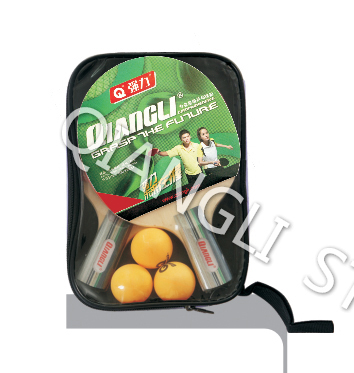货号:ITEM NO.T1208品名:套装直拍双面反胶乒乓板ITEM:pen-holder table tennis racket set 材质:杨木、海绵、橡胶material:poplar+rubber+sponge长度:Length(mm):233+/-1备注:2支乒乓板+3个乒乓球+半透明拍套remark:inward pimpled rubber,2rackets+3balls in semi-transparent full cover