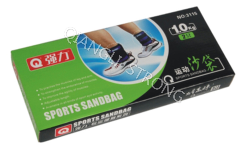 货号:ITEM NO.3115品名:运动沙袋(2只X1公斤)ITEM:sports sandbag材质:100%铁砂+尼龙布Material:iron sand+nylon重量weight:1kgX2pcs备注:彩盒2只装12盒/箱remark:2pcs with color box,12pairs/ctn