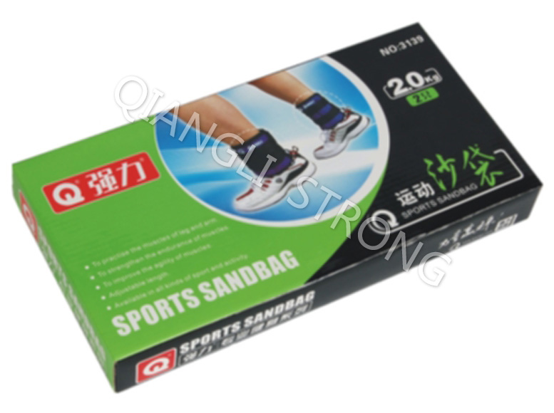 货号:ITEM NO.3139品名:运动沙袋(2只X2公斤)ITEM:sports sandbag 材质:100%铁砂+尼龙布Material:iron sand+nylon重量weight:2kgX2pcs备注:彩盒2只装6盒/箱remark:2pcs with color box,6pairs/ctn