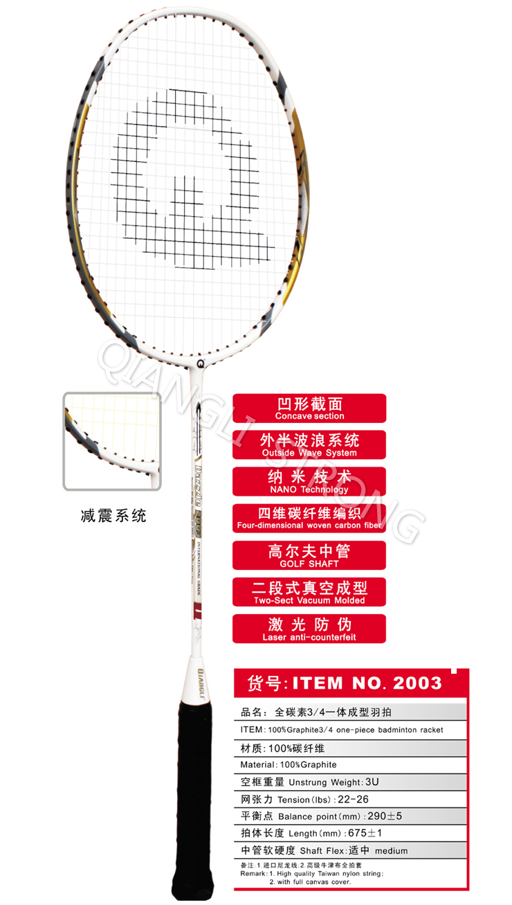 ITEM:100%Graphite3/4 one-piece badminton racket