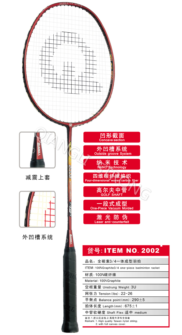 SZ 2002全碳素3/4一体成型羽拍>