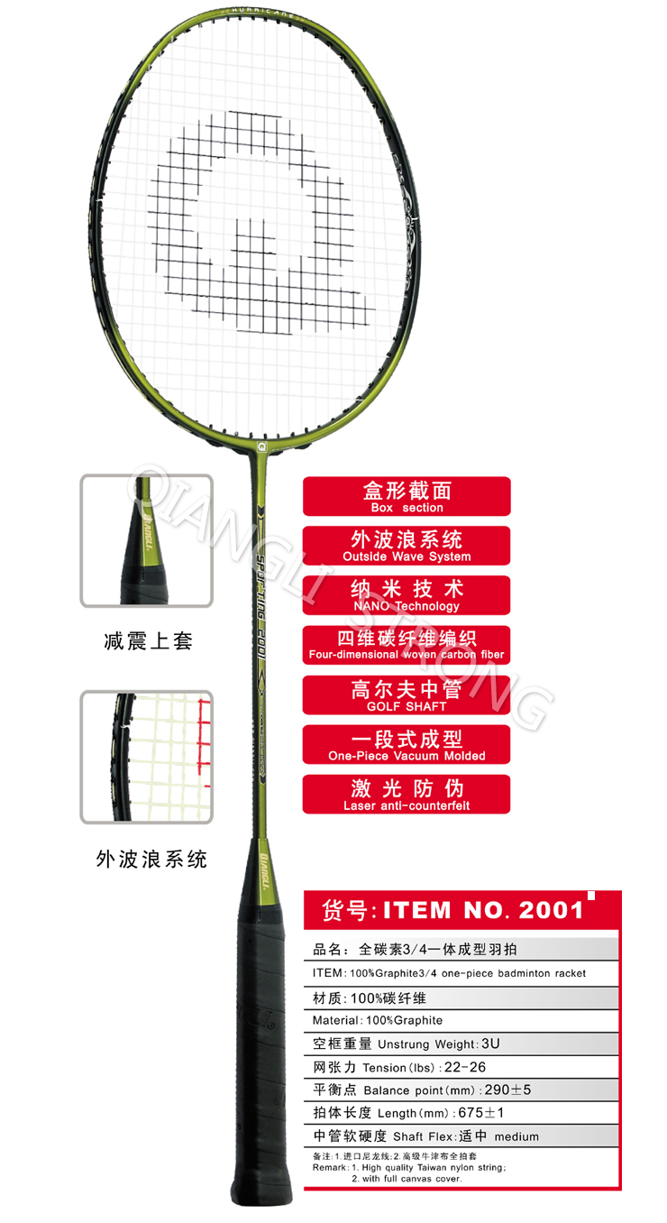 ITEM:100%Graphite3/4 one-piece badminton racket
